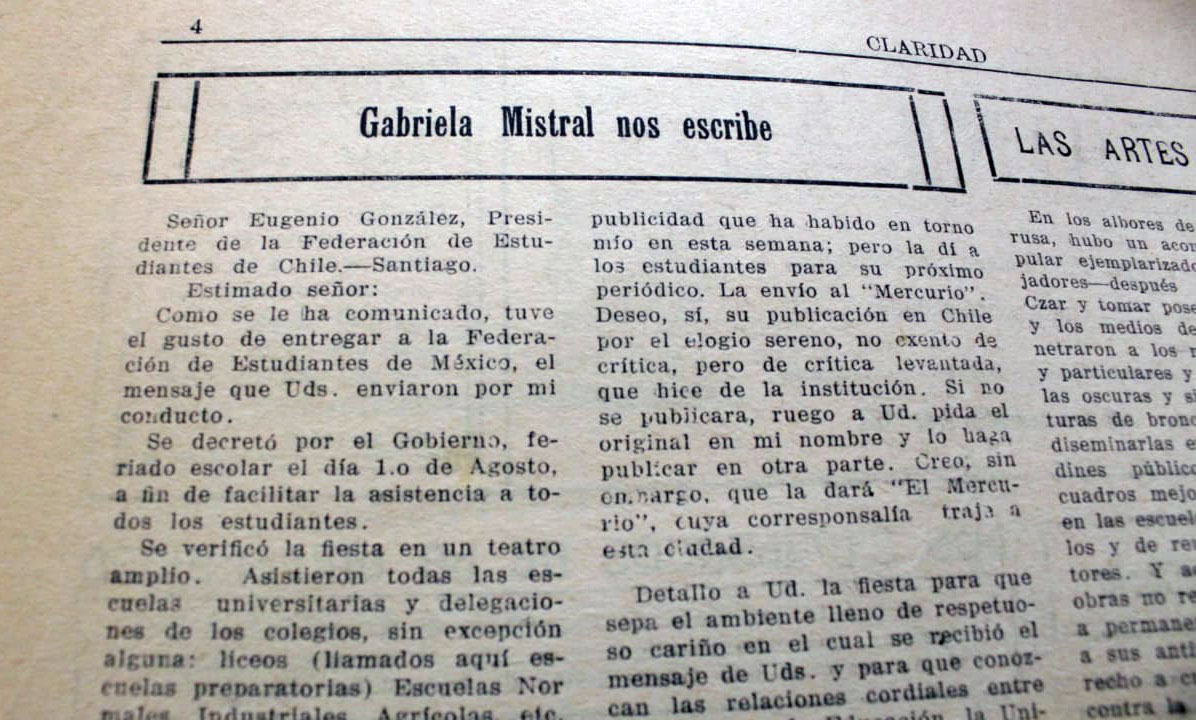 Los viajes de Gabriela Mistral es un proyecto de difusión y georreferenciación documental que reconstruye la ruta de los viajes alrededor del mundo llevados a cabo por Gabriela Mistral, siendo uno de sus primeros pasos su ida a México entre 1922 y 1924.