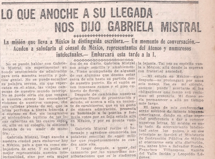 Primera entrevista a Gabriela Mistral sobre su viaje antes de partir México