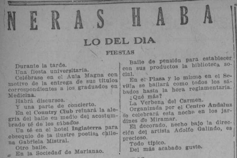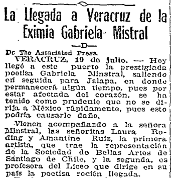 Viajes que realizó Gabriela en julio de 1922 por el país vecino